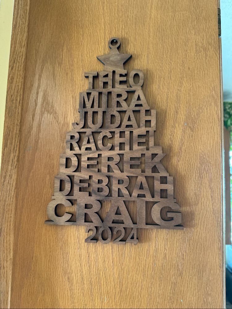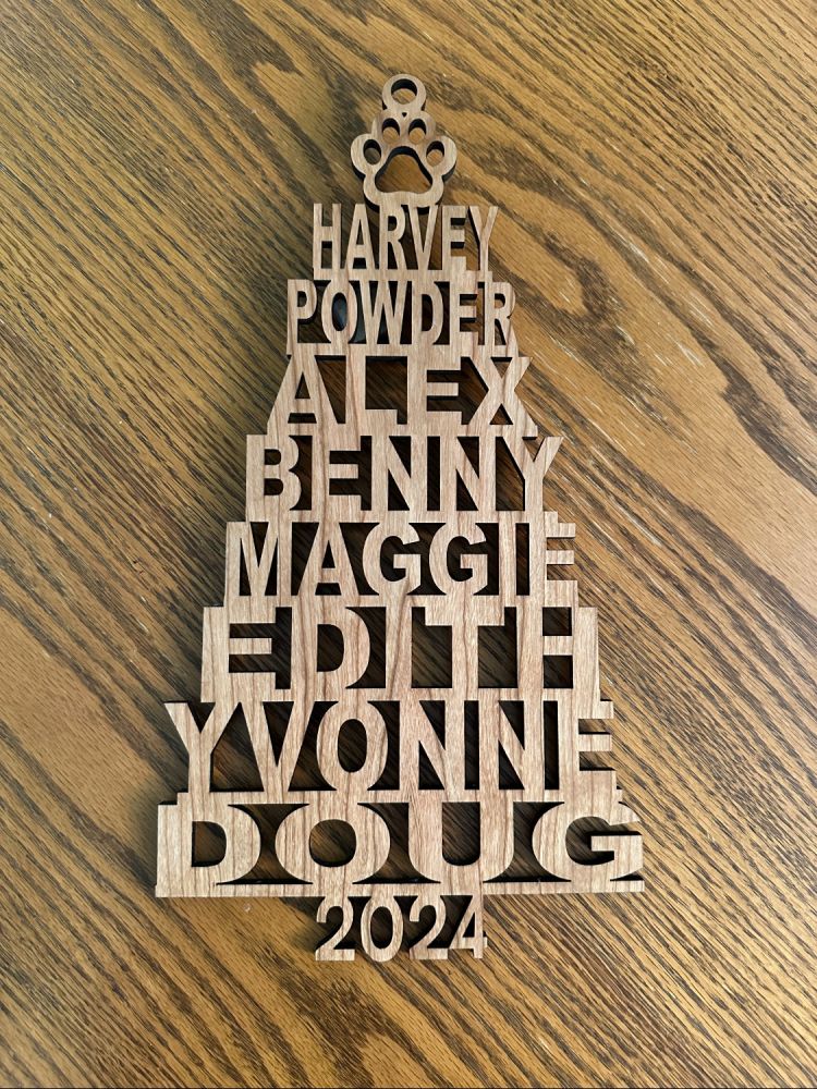 The Christmas Name Trees are my most popular item during the Christmas season. The Name Tree are laser cut from 1/4” plywood veneer, our recommended wood types are walnut, white oak, red oak or cherry. We can do 2-9 names, additional charges could occur for 8-9 names, only if the names are longer and I need to make the tree larger. These make a great Christmas gift and Canadian souvenir. This can be made as a stand up or hang up version. We offer a Star, angel or a paw print as the tree topper.